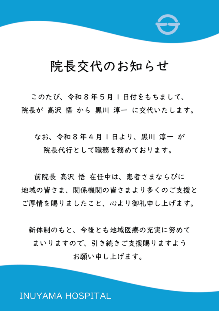 いつも犬山病院の活動にご理解とご協力をいただき、誠にありがとうございます。